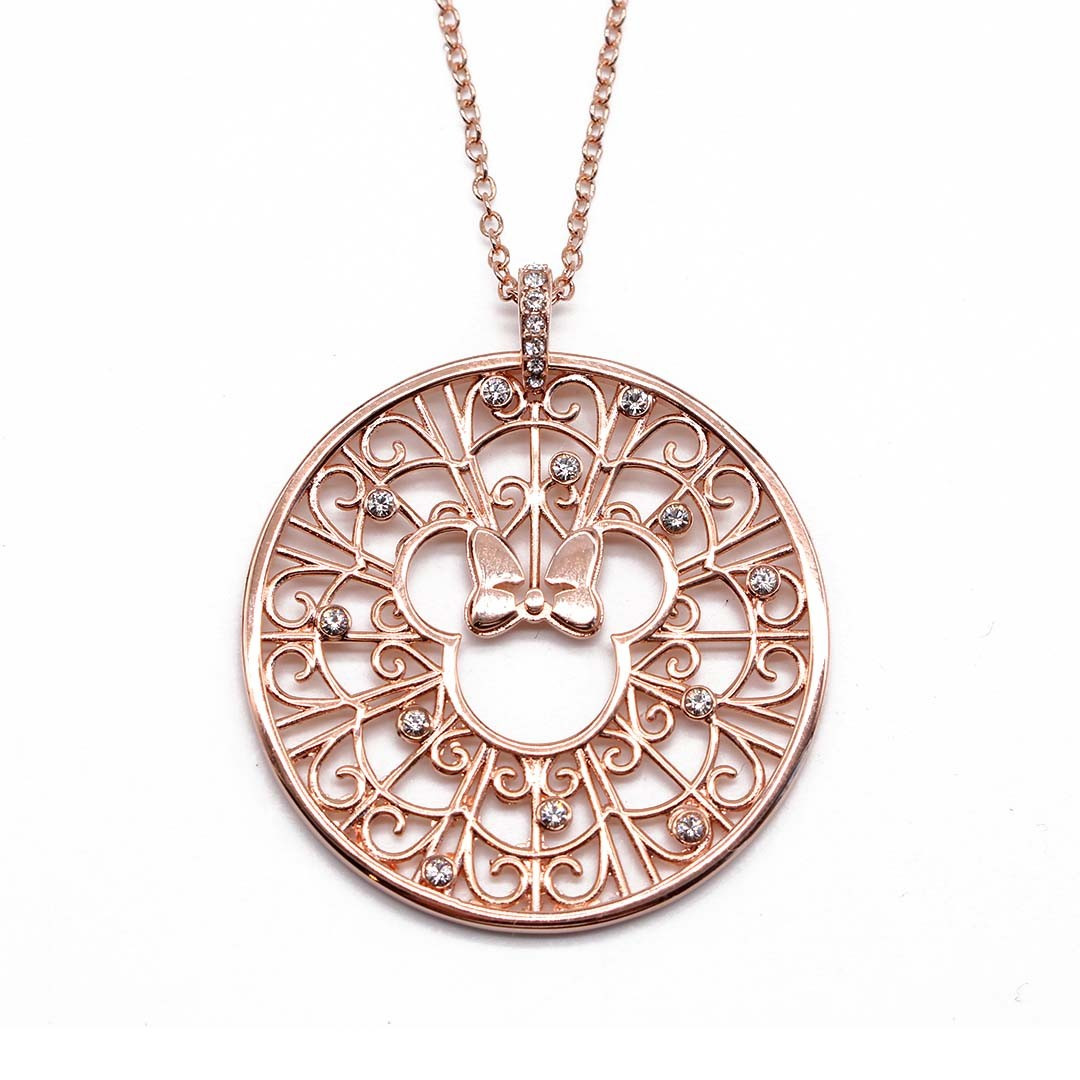 This rose‑gold necklace stands out with its filigree pendant adorned with delicate patterns, an iconic silhouette, and a refined bow. The sparkling stones add a subtle shine, enhancing your style with elegance. Lightweight and comfortable, it suits both everyday looks and dressier outfits. A timeless, feminine, and chic piece, perfect as a gift or to elevate your jewelry collection with an original and elegant accessory.
