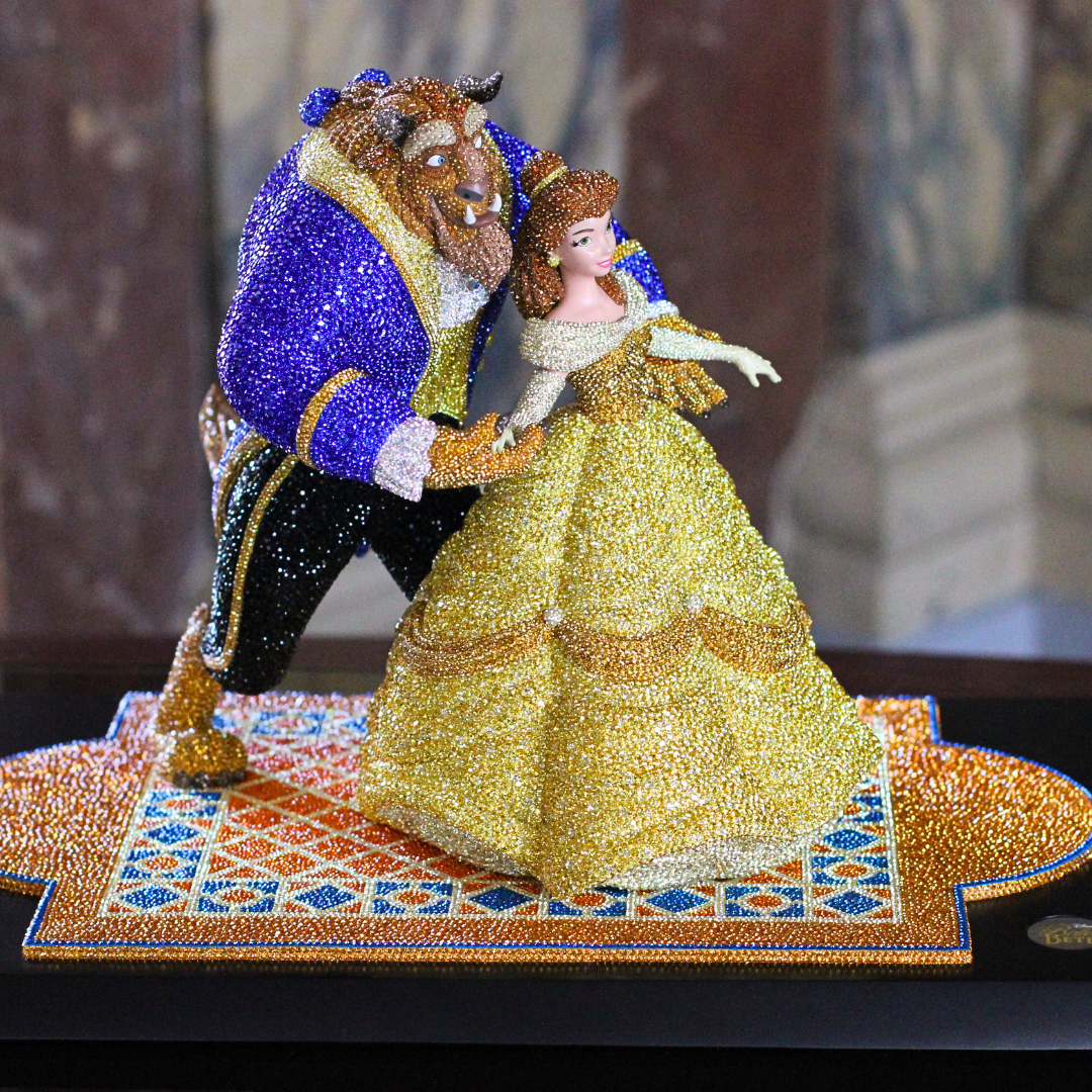 Immerse yourself in the luxurious splendor of the Crystal Myriad “Beauty and the Beast” figurine, an exceptional piece in a limited edition of only 200 pieces . This majestic work is meticulously adorned with 72,923 sparkling crystals , creating a true symphony of brilliance that celebrates the timeless love of Disney's tale. Crafted with exceptional craftsmanship , each painstaking detail required 438 hours of dedicated work , resulting in an exquisite piece of art that embodies elegance and magic .