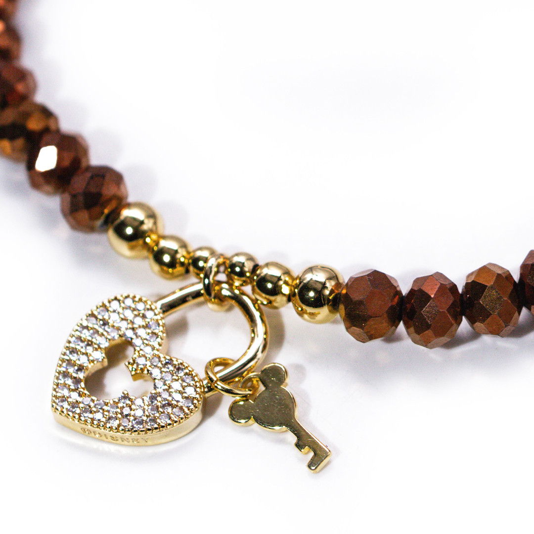 This camel pearl and heart key bracelet is a statement of softness and magic. The warm-toned camel pearl pairs beautifully with the heart-shaped key, symbolizing emotion and connection. A subtle yet meaningful Disney accessory, perfect to gift or wear daily to keep a bit of dreamland close at hand.