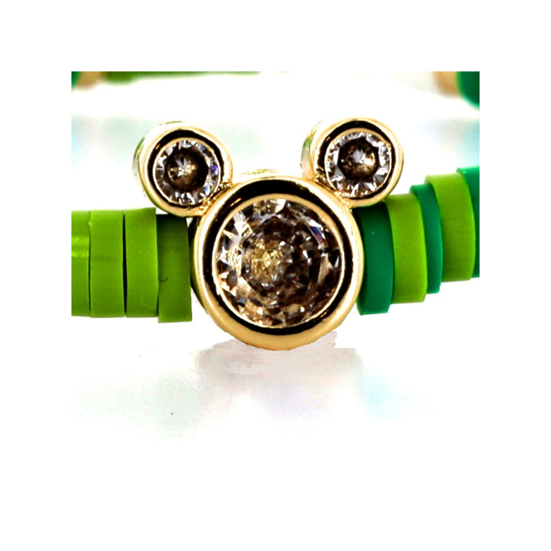 This Disney bracelet showcases the iconic Mickey silhouette in a vibrant green shade that feels refreshing and full of energy. Lightweight and easy to wear, it pairs well with any outfit and layers effortlessly with other pieces. Whether as a subtle nod to the Disney universe or simply to add a touch of playful color, this bracelet brightens the wrist with character and charm. A simple, expressive, and timeless accessory made to follow along with every adventure.