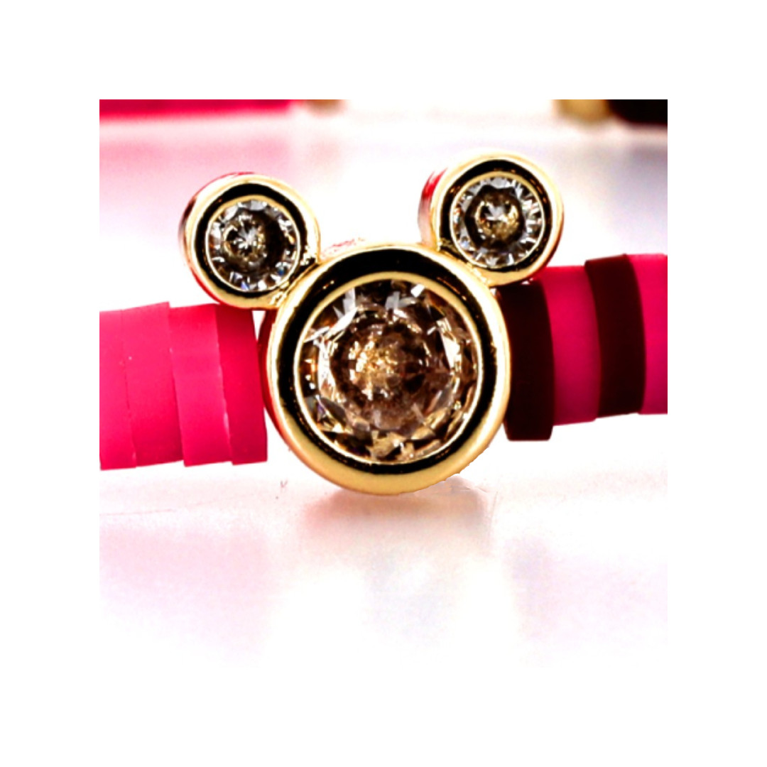This Disney bracelet features the timeless Mickey silhouette, reimagined in a soft yet striking purple hue. Lightweight and comfortable, it’s ideal for daily wear and brings a gentle Disney touch to the wrist. The color adds a unique, slightly mysterious vibe, perfect for expressing personality with a modern twist. Whether worn alone or layered with other accessories, this bracelet is a charming, simple piece with lasting appeal and magical detail.