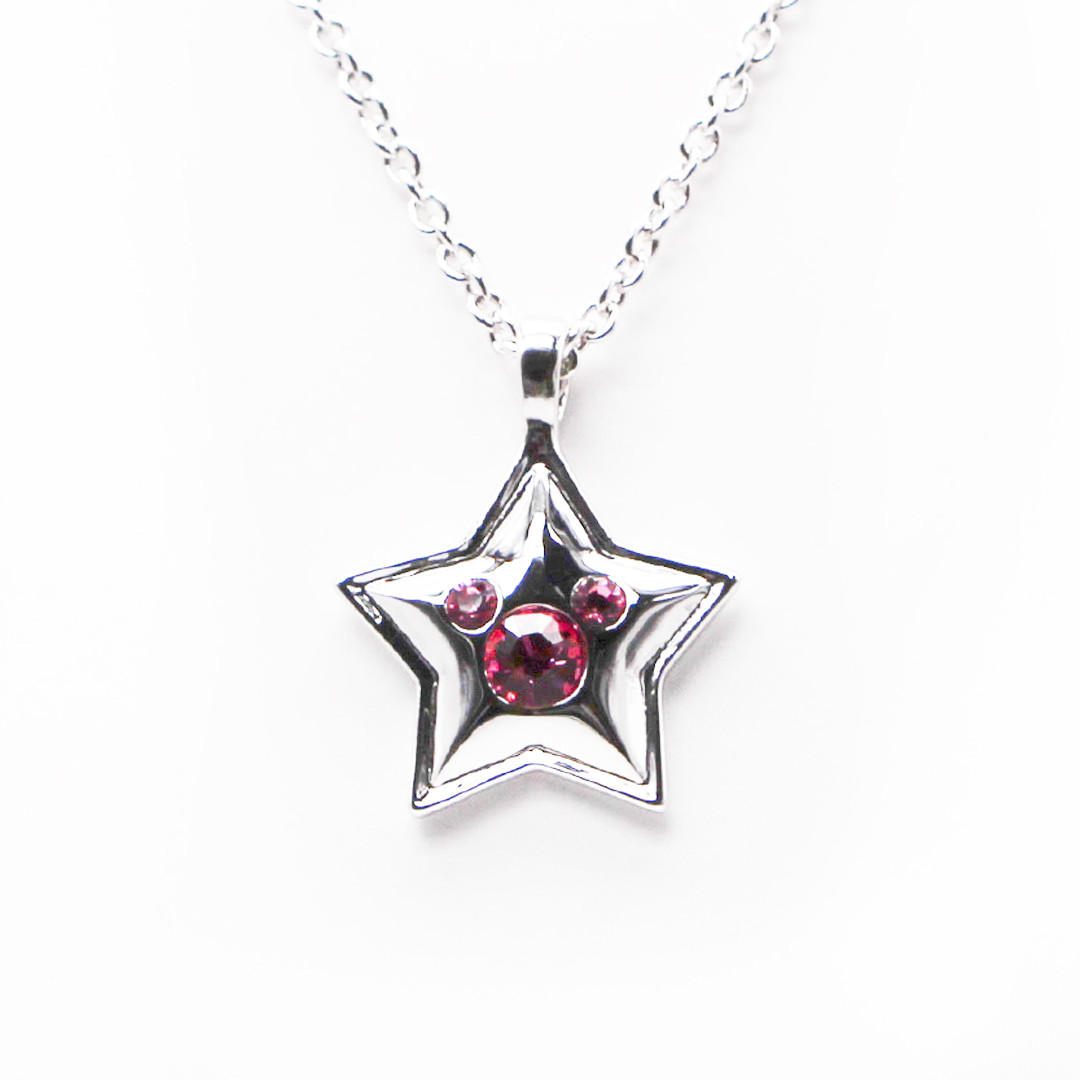 The Star Pink Stone Necklace showcases a refined silver star pendant with a modern openwork design, highlighted by a bright pink stone that adds softness and femininity. The fine chain enhances the pendant without overpowering it, creating a light, contemporary look. This elegant jewelry piece pairs effortlessly with everyday outfits as well as dressier styles. A charming gift idea for anyone who loves subtle yet luminous accessories.