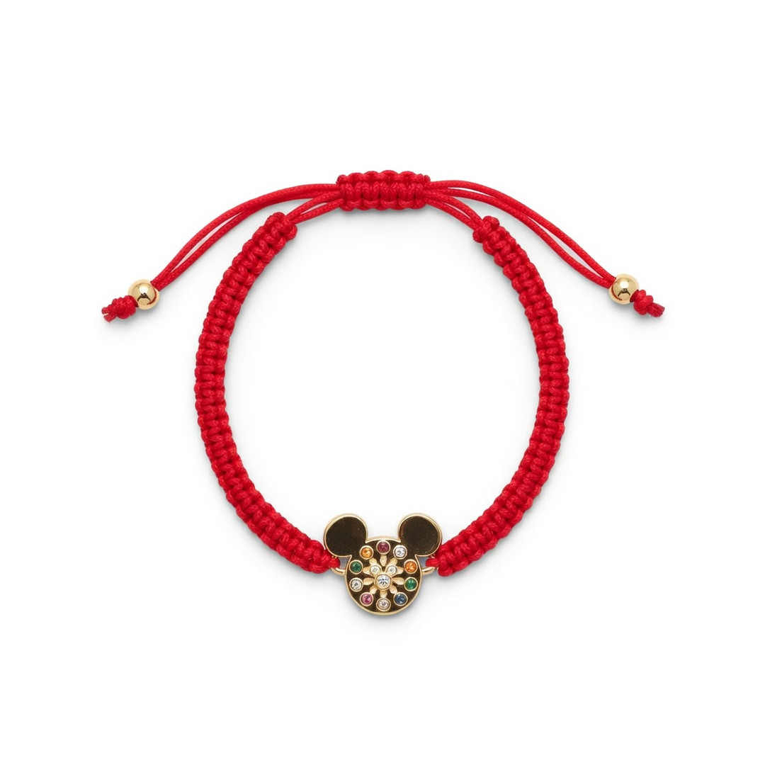 The Red Stained‑Glass Mickey Bracelet features a vibrant braided red cord paired with a gold Mickey charm set with multicolored stones inspired by cathedral stained‑glass art. Adjustable and comfortable, it adds a bright, symbolic and stylish touch to any outfit. A perfect fantasy jewelry piece and a thoughtful gift idea for fans of colorful and iconic designs.