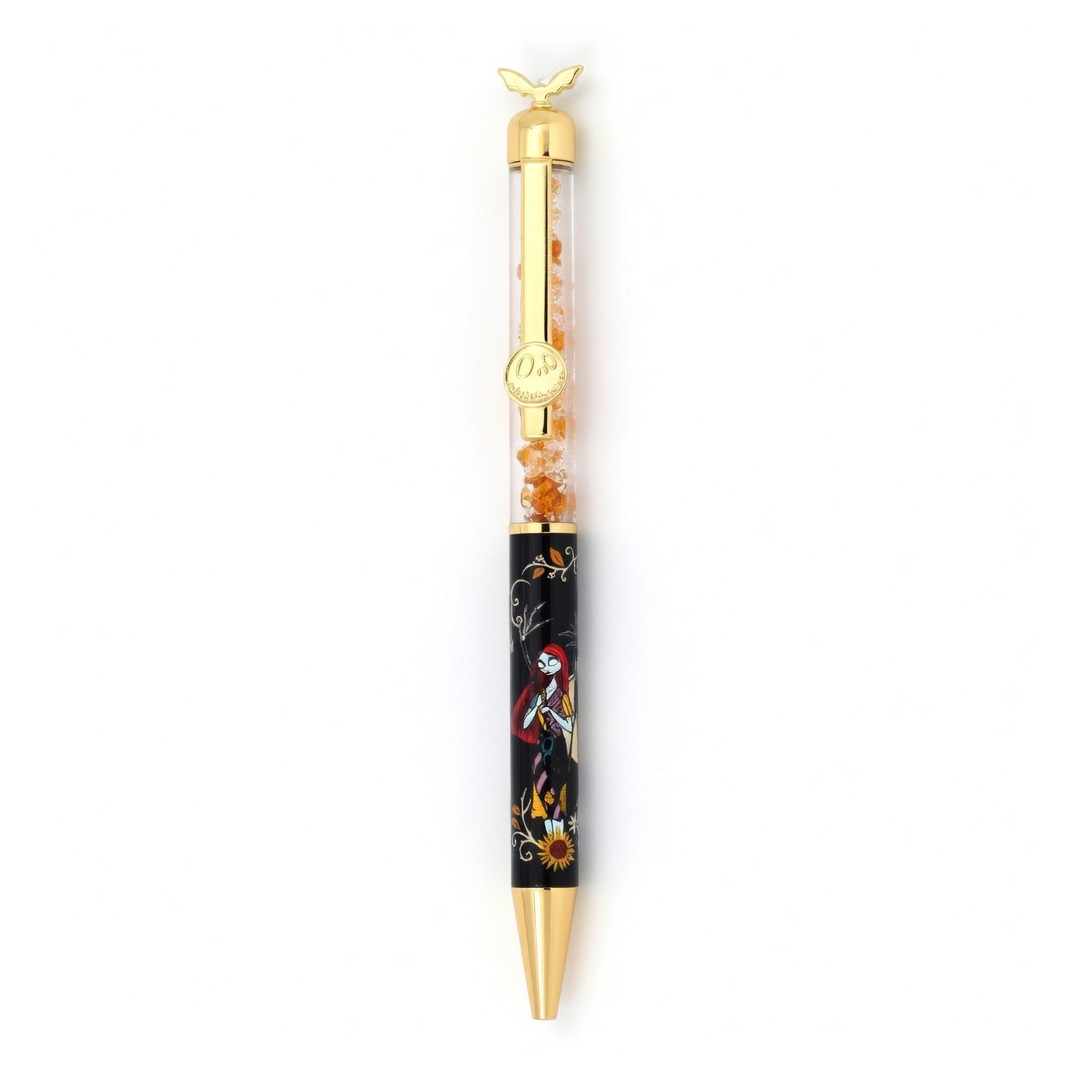 This elegant pen features Jack Skellington in a refined black design enhanced with gold details, a stylized moon, and delicate floral motifs. The upper transparent chamber is filled with sparkling orange crystals, while the gold‑plated accents give it a premium finish. A perfect accessory for fans of artistic stationery and unique collectibles.