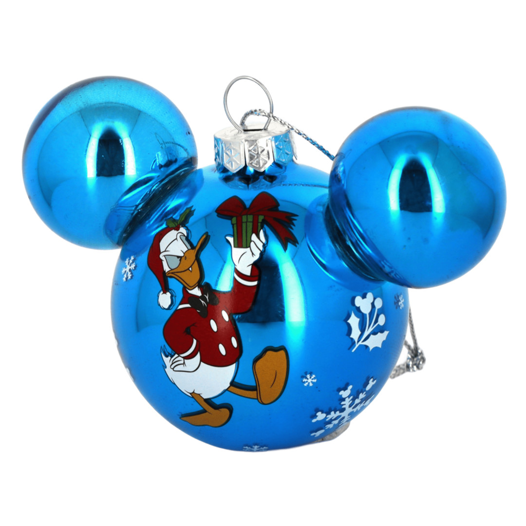 Capte-lumière et bonne humeur ! Sur cette boule Mickey bleue, Donald parade en habit de Noël avec son présent. Les flocons blancs contrastent avec le bleu miroir pour une note fraîche et joyeuse. Un clin d’œil espiègle qui fait scintiller la magie Disney au cœur du sapin.
