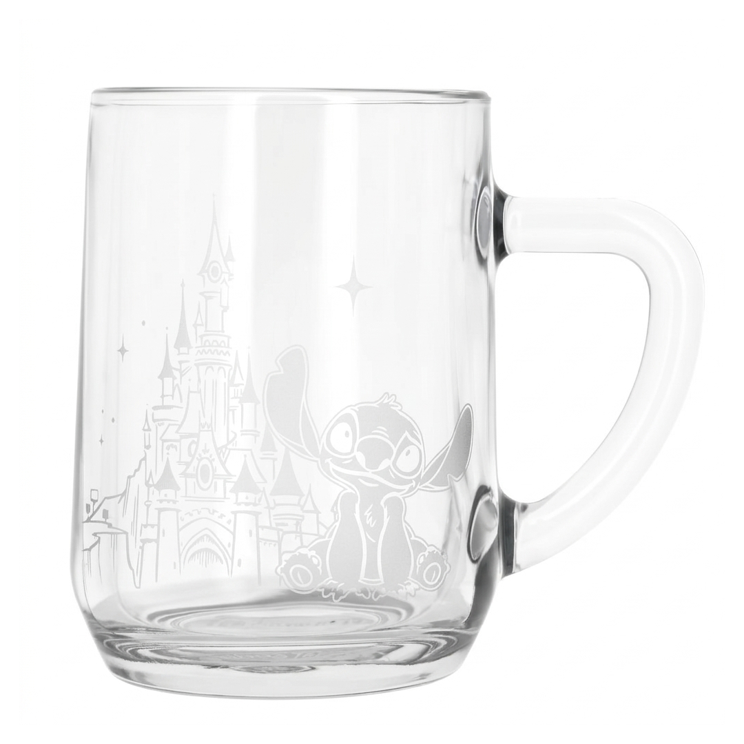 Ce mug en verre dévoile une gravure détaillée de Stitch posé devant le château de Disneyland Paris, entouré d’étoiles féeriques. Son design premium apporte une touche de magie Disney à chaque boisson. Un incontournable pour les fans, la collection Disney, ou comme idée cadeau magique pour petits et grands.