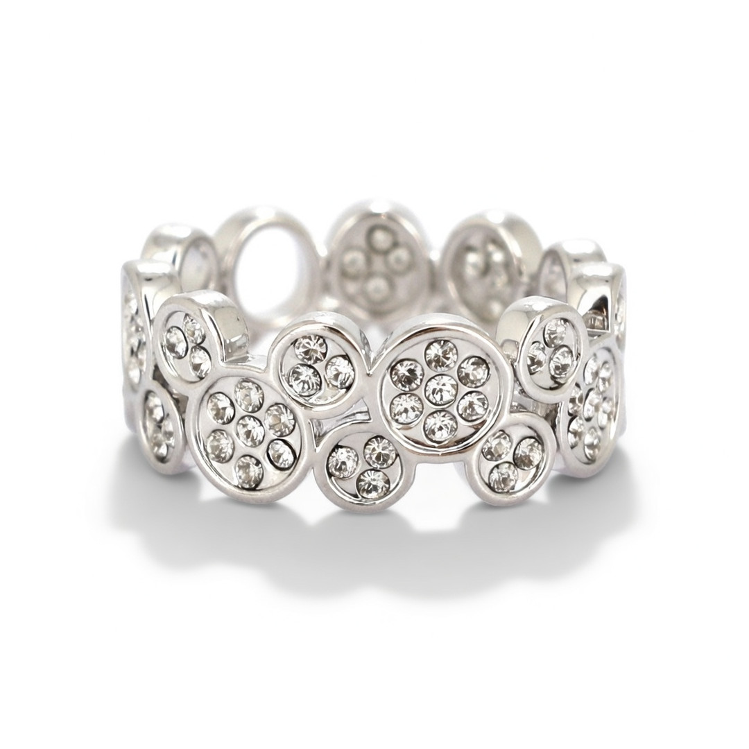 La Bague Mickey Circle présente un motif élégant inspiré de la silhouette de Mickey, composé de cercles sertis de zircons étincelants. Son anneau argenté offre un rendu lumineux, moderne et parfait pour les fans de bijoux fantaisie raffinés.