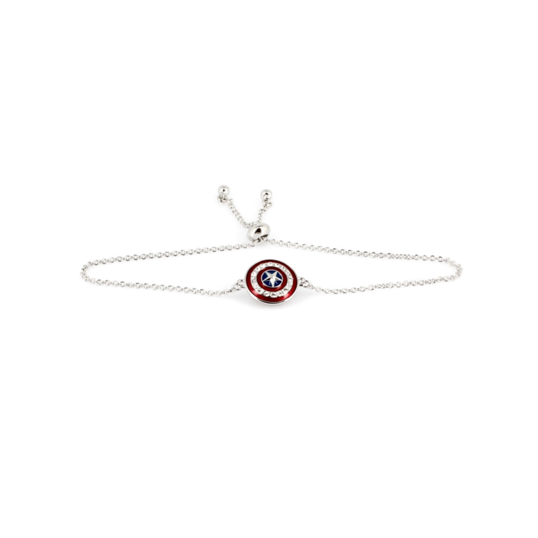 Ce bracelet bouclier Captain America rend hommage au super-soldat légendaire de l’univers Marvel. Avec son médaillon circulaire inspiré du bouclier emblématique, ce bijou allie style et force. Idéal pour affirmer votre passion pour les héros Disney Marvel, ce bracelet léger et résistant complète parfaitement une tenue décontractée ou geek chic.